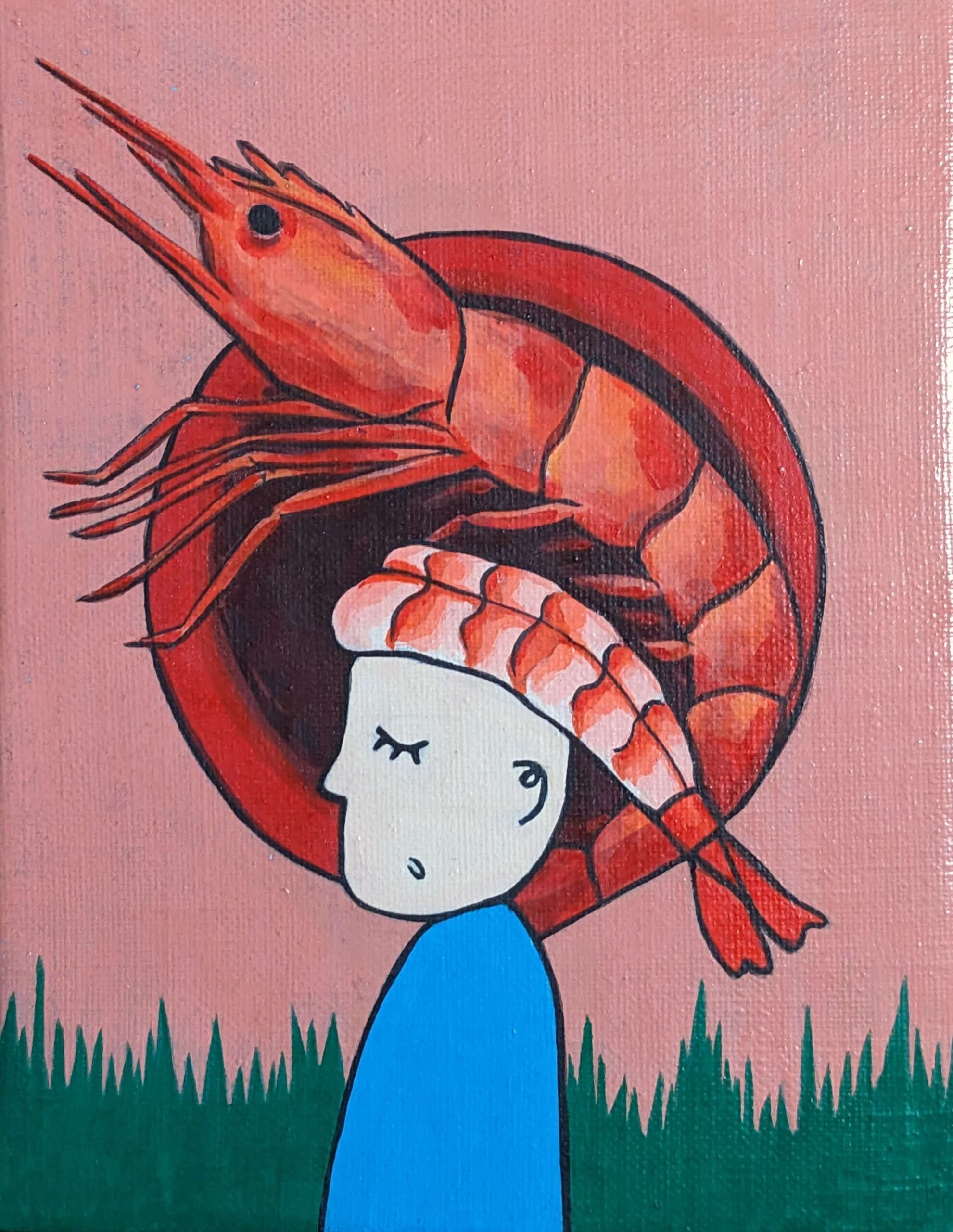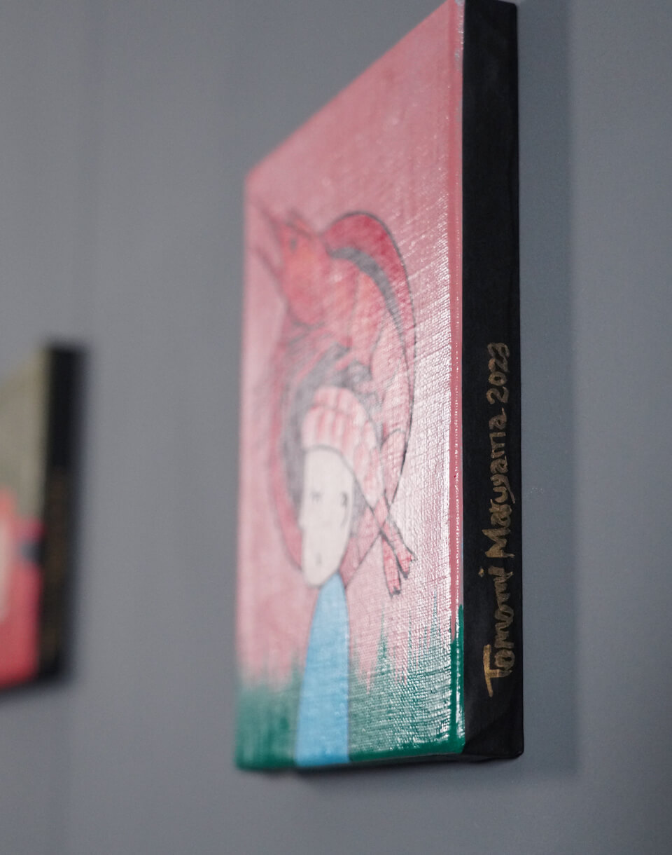 制作年:2023年 サイズ:約180X140X20mm(F0) 素材:アクリルガッシュ、キャンバス、艶出しニス仕上げ サイン:サイドにあり