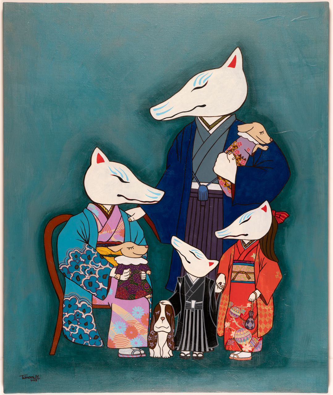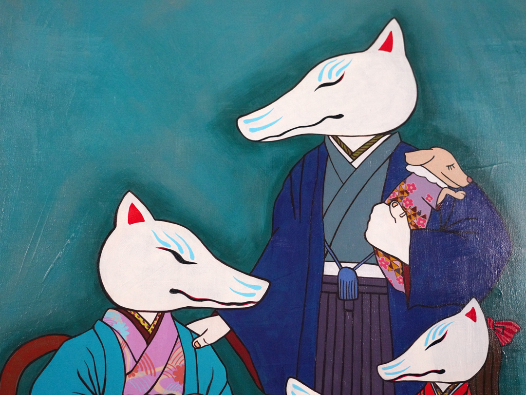 明治昭和の時代の家族写真。犬も人もこの世に生を受け、神の使い白狐へと進化する。