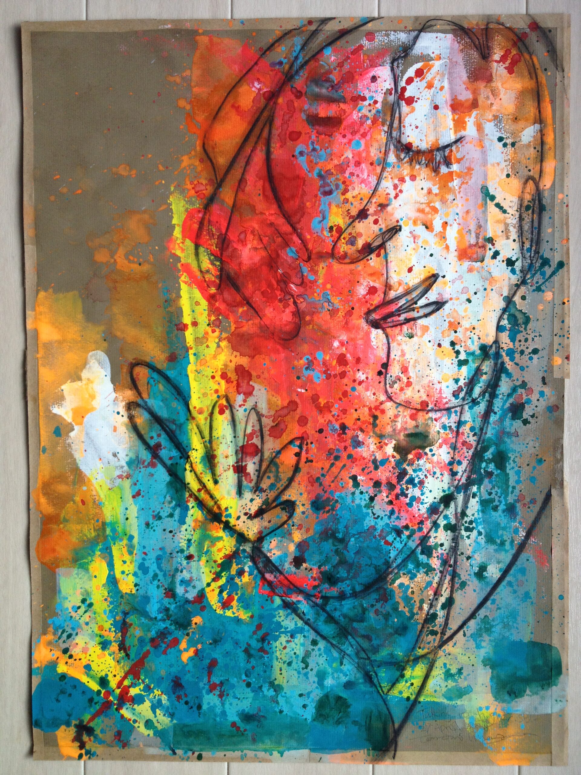 アート 抽象画 作者:マルヤマトモミ/Tomomi Maruyama 制作年:2006年 サイズ:30 W x 40 H x 0.1 D cm 素材:アクリルガッシュ、木炭、紙