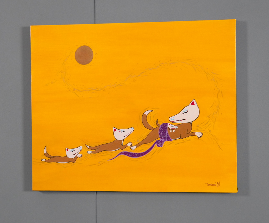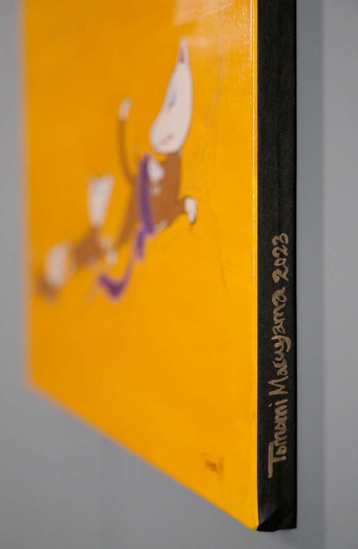 制作年:2023年 サイズ:53 W x 43H x 2 D cm 素材:アクリルガッシュ、紙、木製パネル サインあり、表面保護がしてありますのでそのまま飾っていただけます。