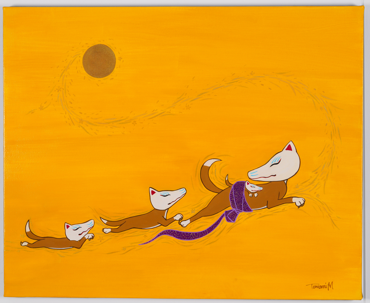 地上で家族が増えた白狐は神通力で月に向かうことにした。