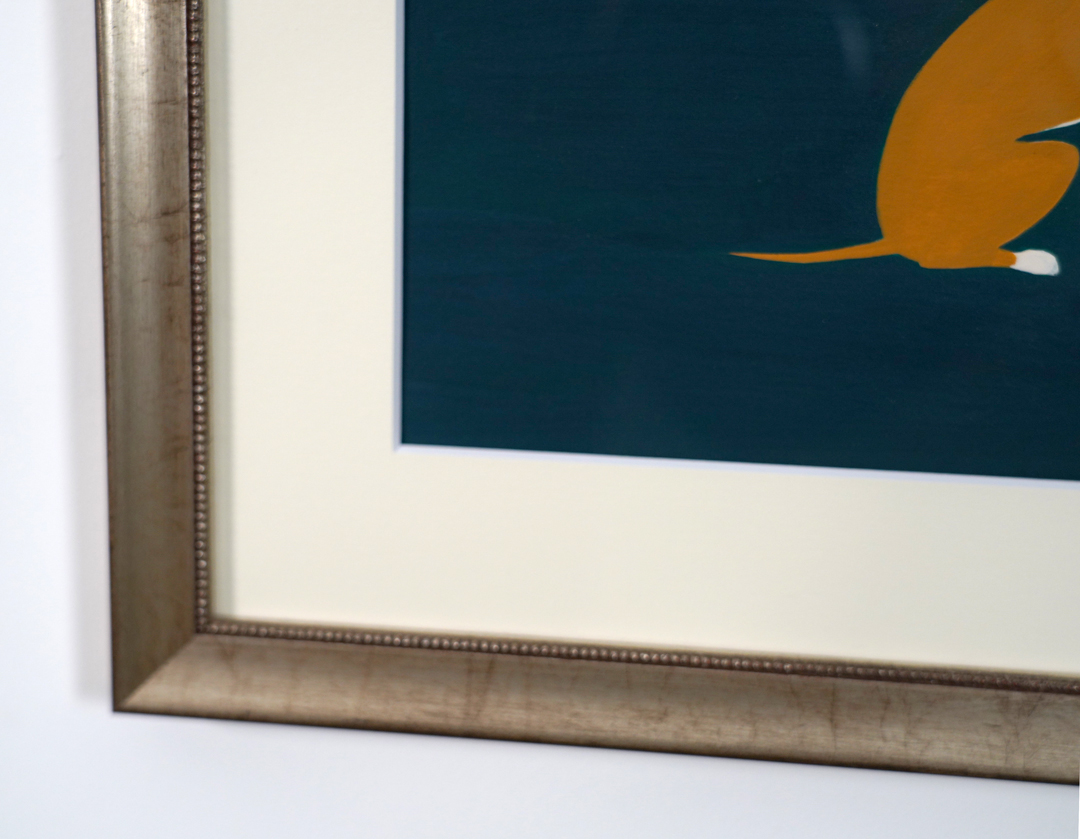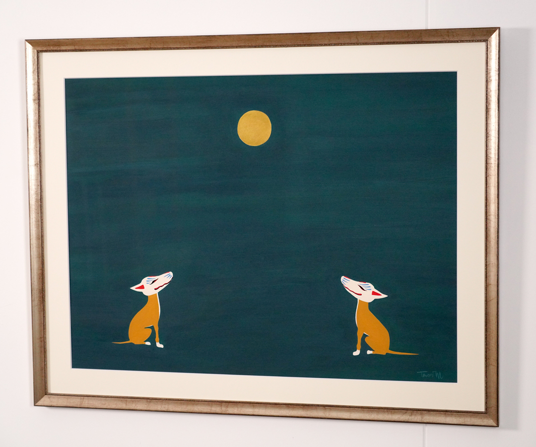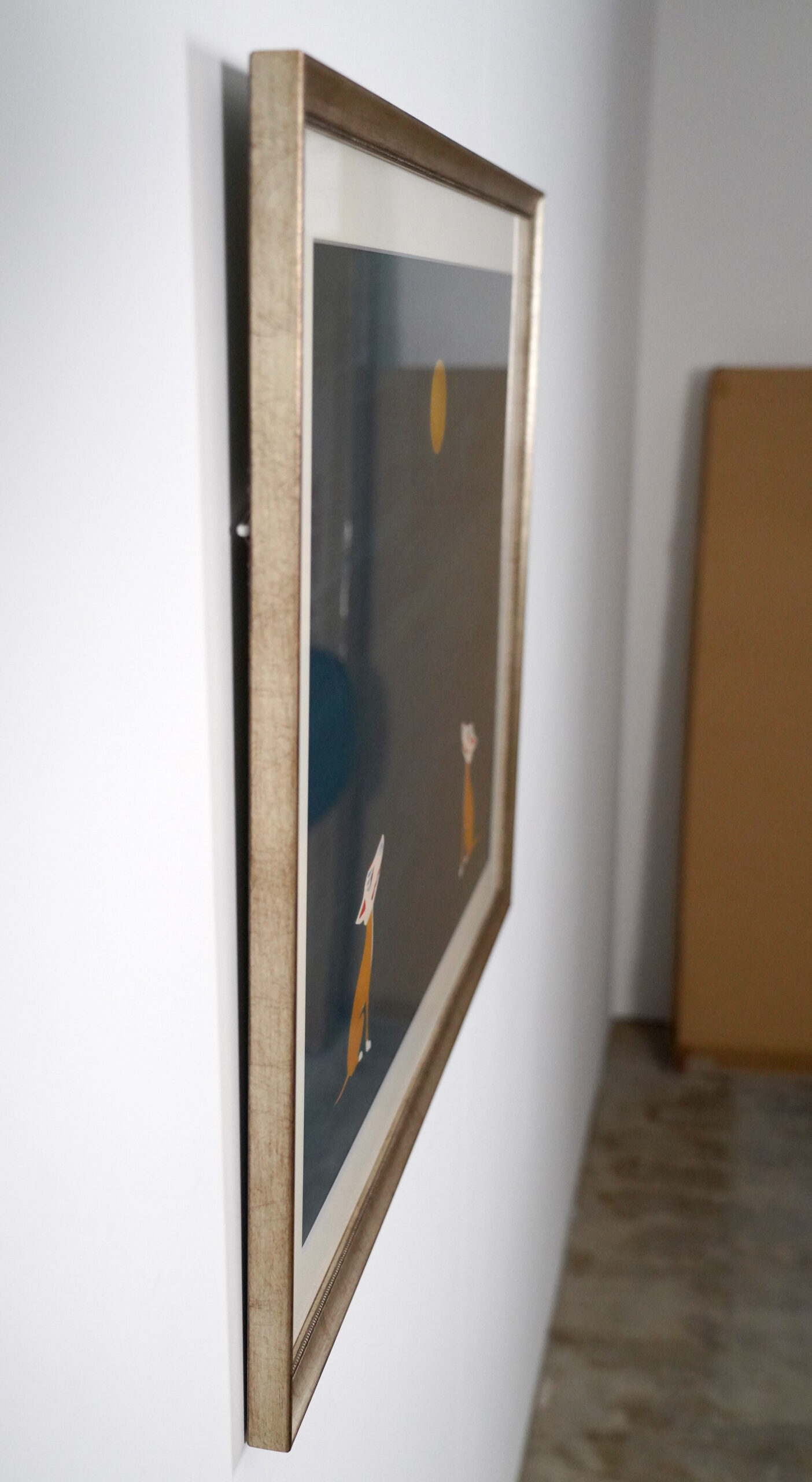 制作年:2022年 サイズ:55 W x 40 H x 0.1 D cm(額のサイズはプラス5センチ前後となります) 素材:アクリルガッシュ、紙 サインあり、額入り