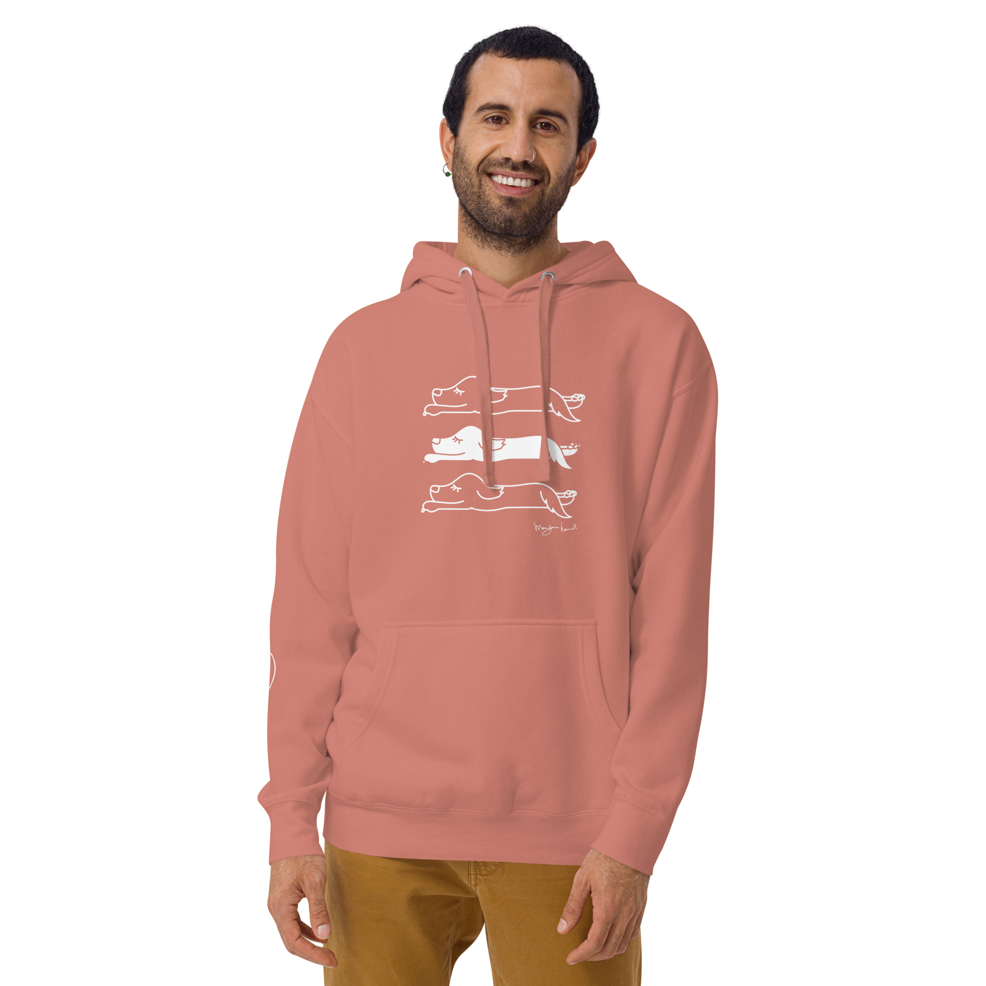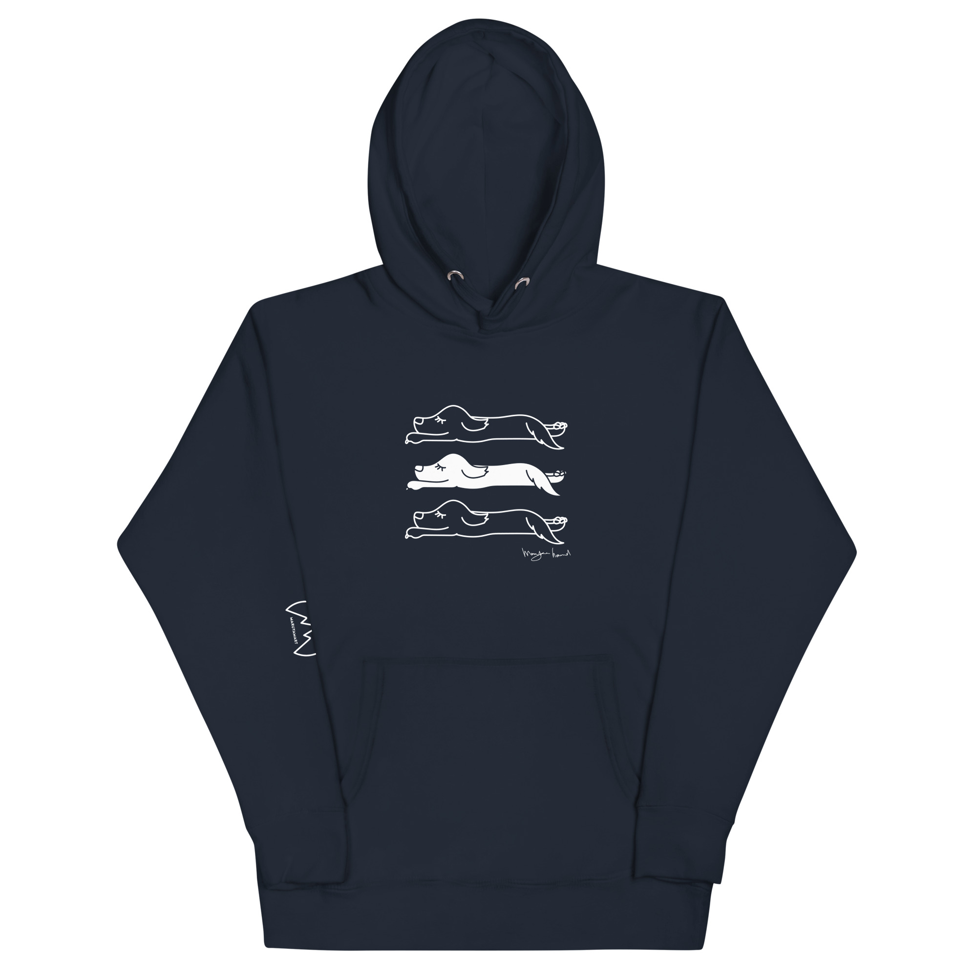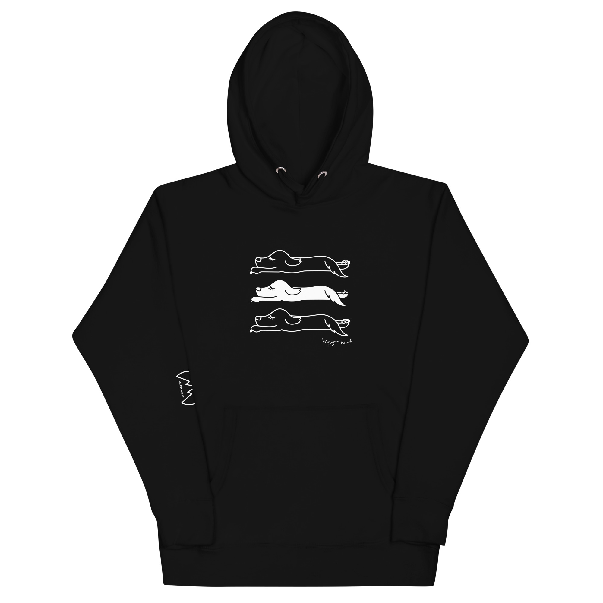 マルヤマート限定のオリジナル・ハウンドパーカー。サイズはユニセックスでS-3XLまでご用意。オールシーズン着られる生地を選びました。右袖には座った時にロゴがしっかり見えるワンポイントデザインで個性をアピール。犬好き、ゆるキャラ好きな方にも。